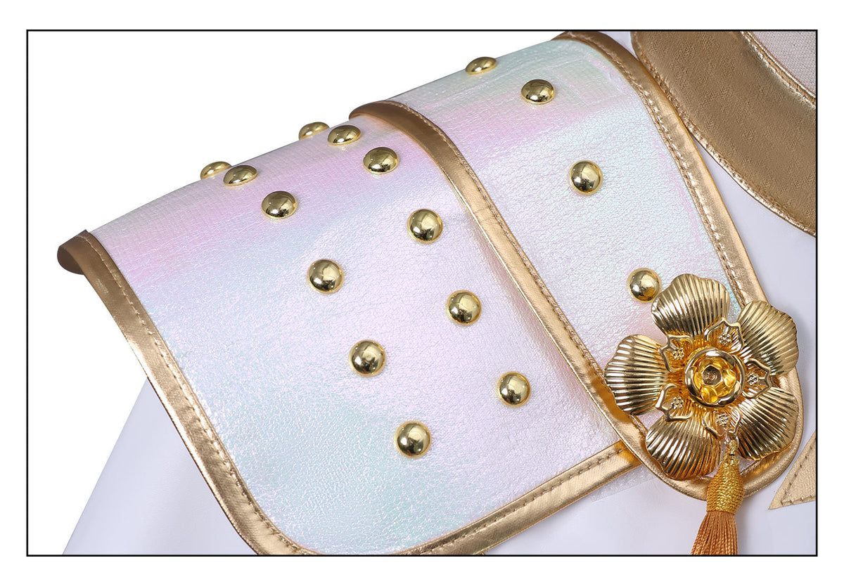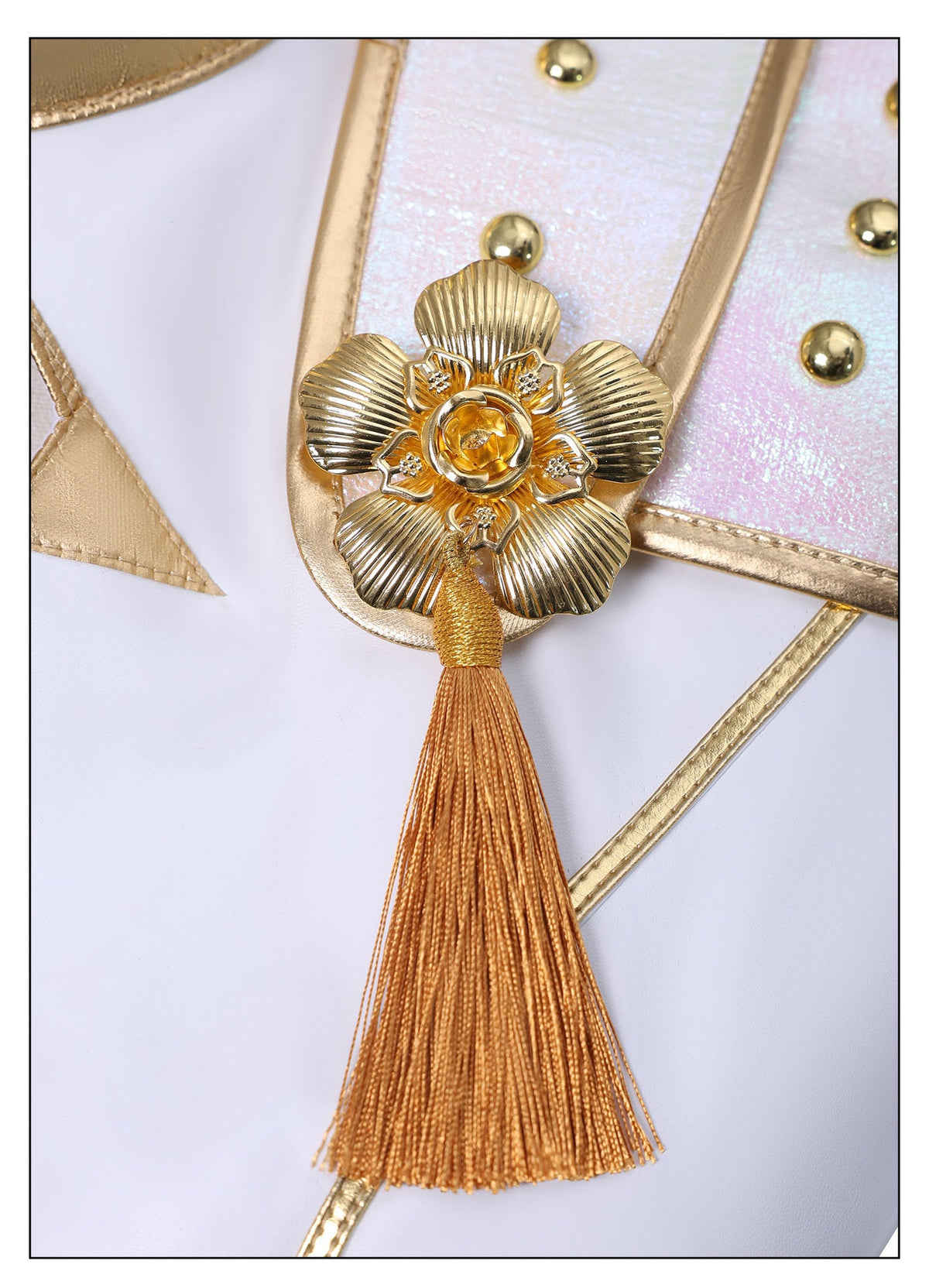 Fabric: White leather / Gold leather trim / Gold leather / Laser gold leather / Iridescent leather