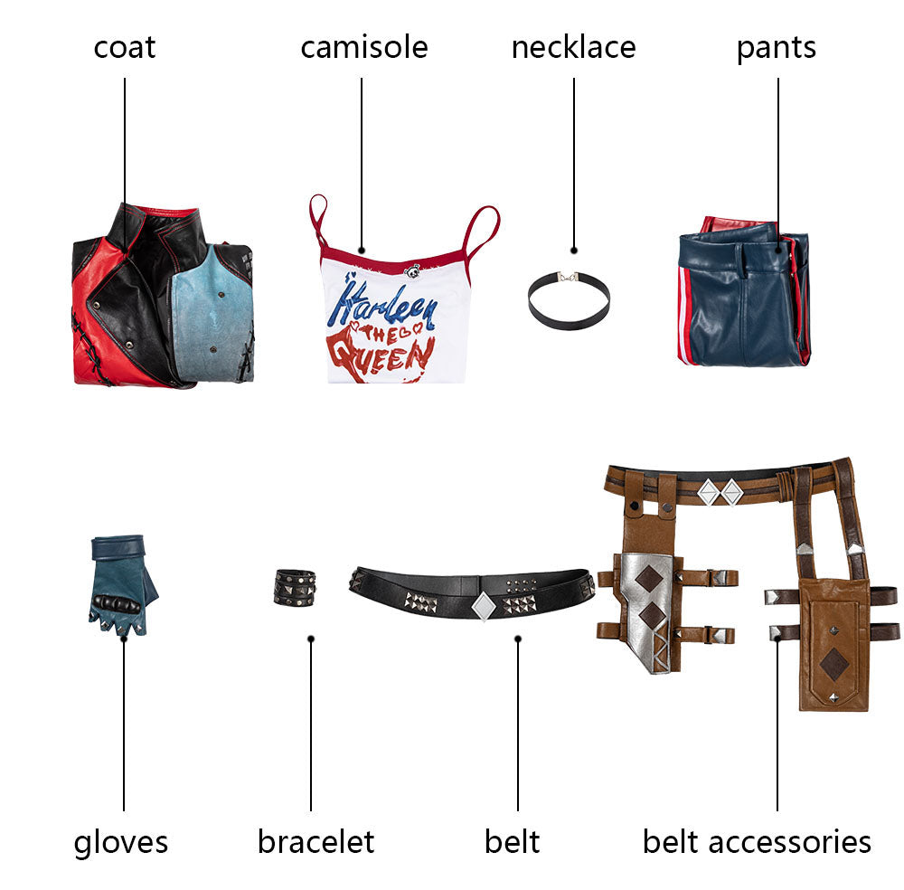 Included Items: Coat, camisole, pants, necklace, belt, prop holster, Bracelet, gloves, boots (Boots are not included in the fullset)