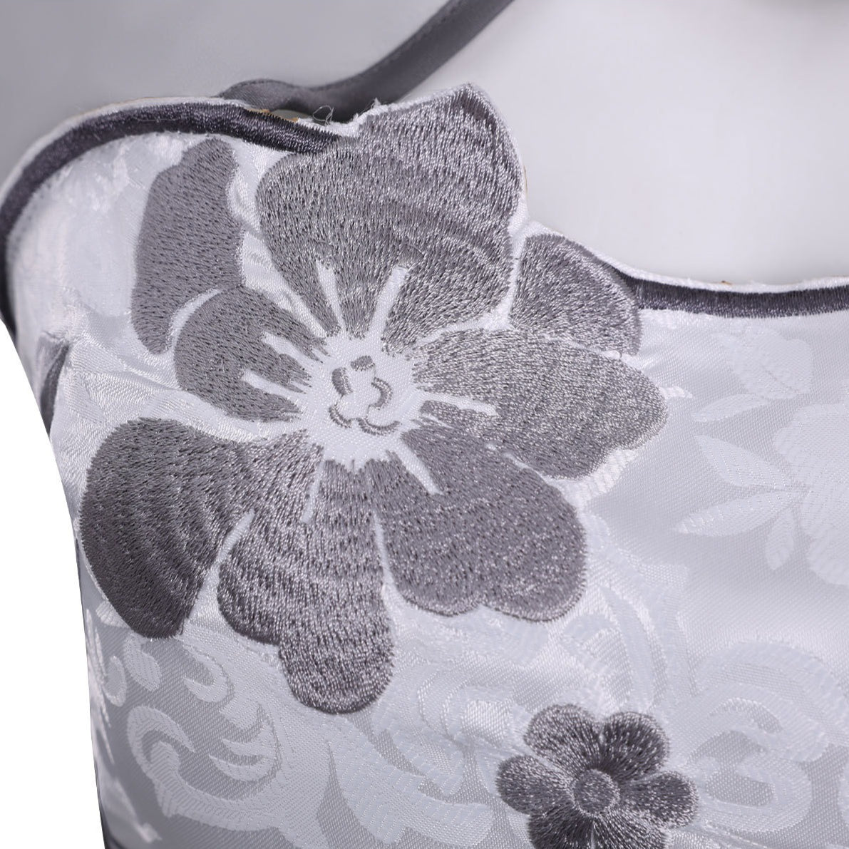 Fabric: White lining / White star yarn / 40D lining / Black star yarn / Gray binding / Gray yarn / Laser-cut white bark yarn / Printed glossy spandex / Cloud pattern jacquard / Black leather on both sides / Glitter leather on both sides