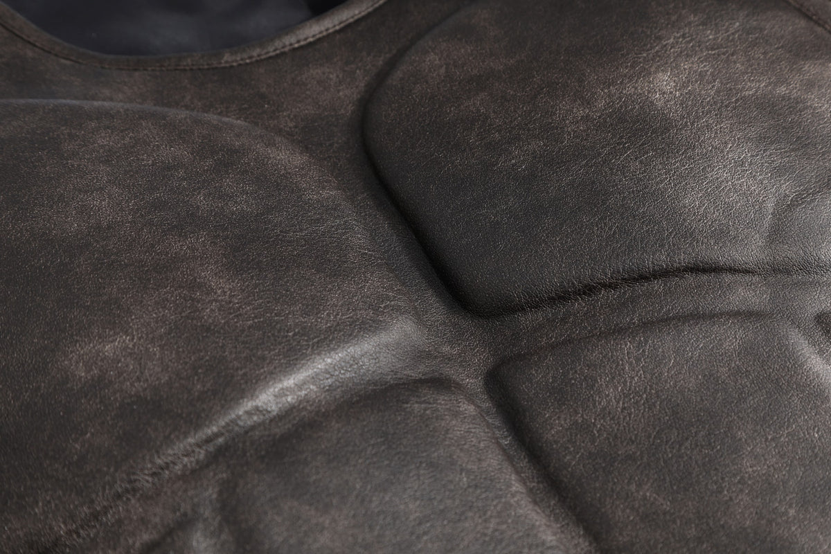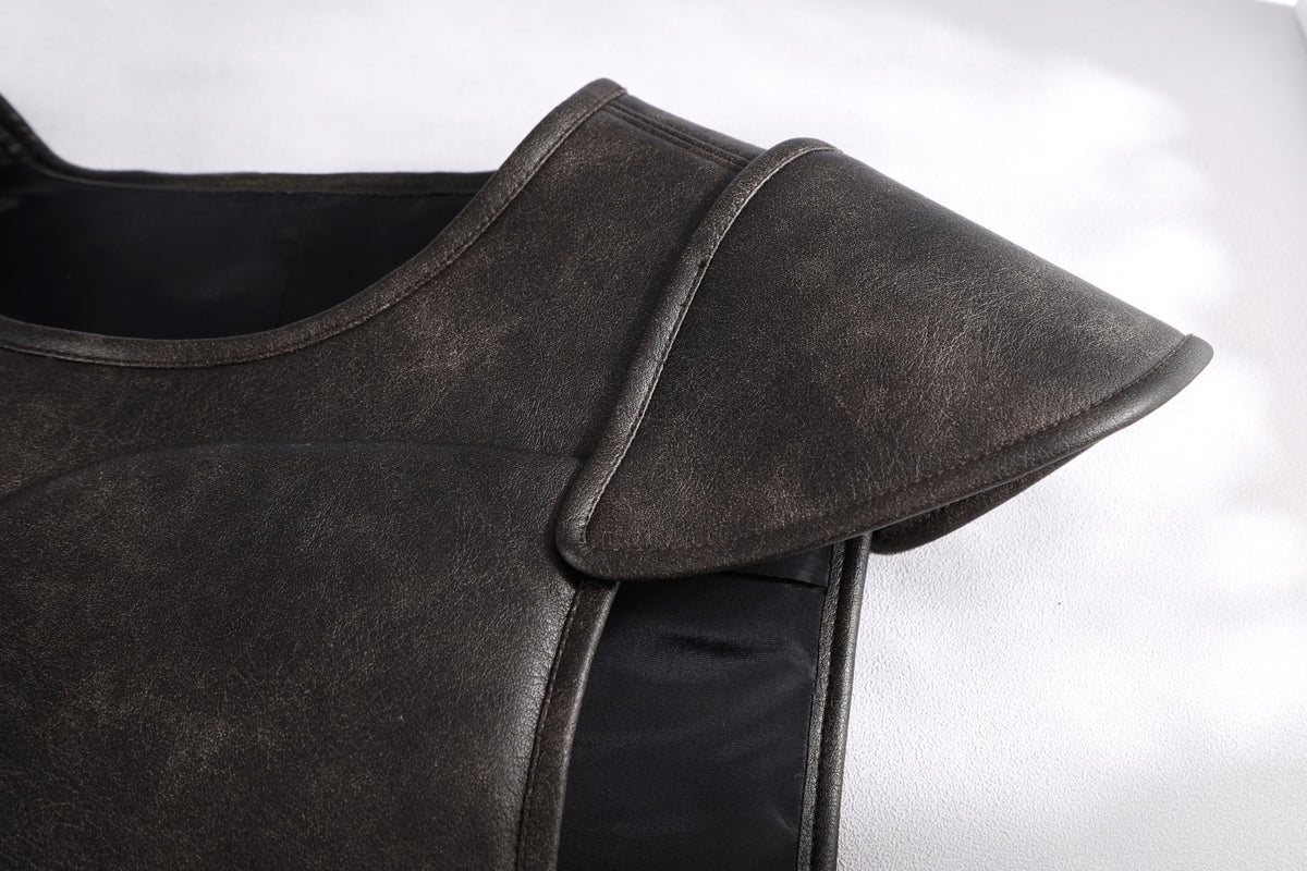 Vest/Skirt: Distressed leather (non-stretch), polyester taffeta (non-stretch), sheepskin-patterned black leather (non-stretch)