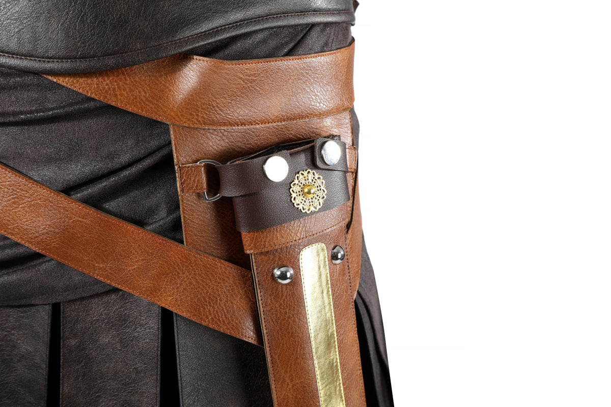 Included Items: Vest / Skirt / Top / Cloak / Waistband / Pants / Gloves / Belt / Sword Belt, Boots / Helmet (The boots and helmet are not included in the fullset)
